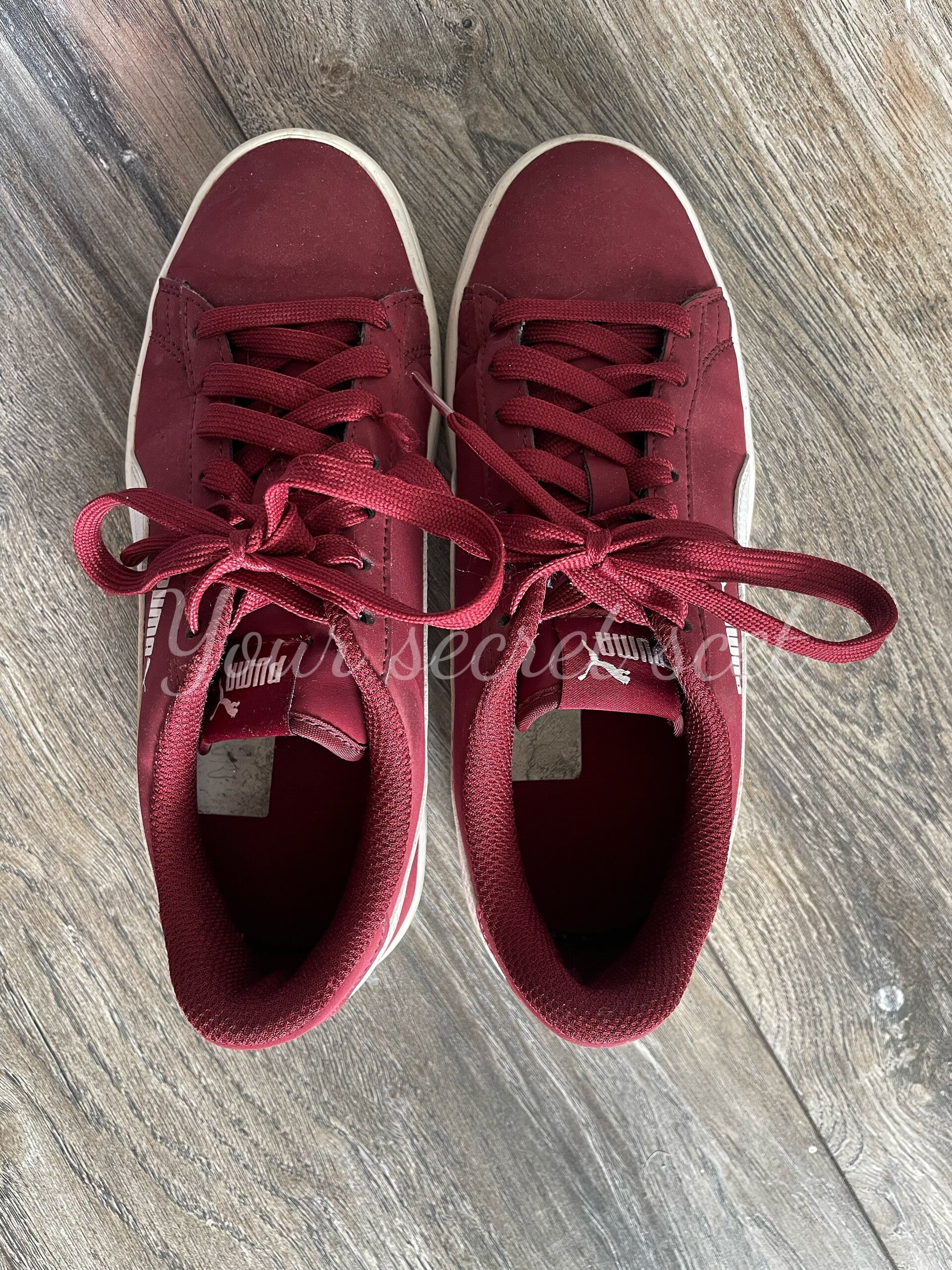 Those bordeaux Pumas were my only sportshoes for a long time, and now they have to share my feet with one other pair. They look light used, that's because I wear them to the gym insinde. Those shoes are all about the scent.